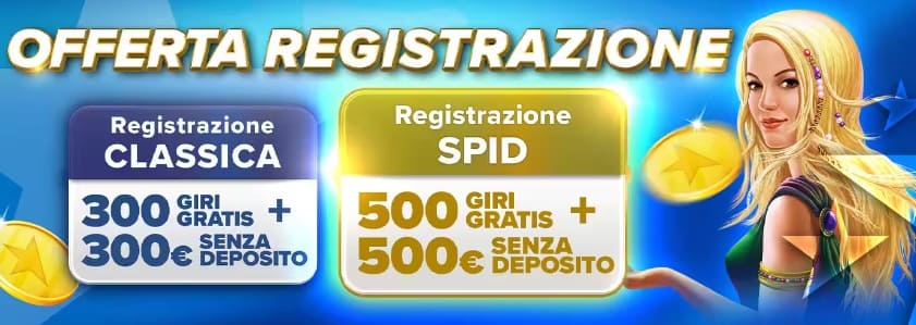 Attualmente tra i Migliori Casino Online ADM a nostro avviso i top 3 bonus SPID a disposizione degli utenti dei casino online sono offerti da Snai con 1000€ Senza Deposito perchè un massimale così alto non può certo lasciare indifferenti, motivo per il quale merita menzione AdmiralBet che oltre al medesimo massimale aggiunge anche 500 Giri Gratis (anche se come vedremo ci sono wagering differenti) e terzo ma non meno importante Starvegas Casino che sulla stessa linea offre 500€ + 500 Free Spin da spendere sulle migliori slot online.